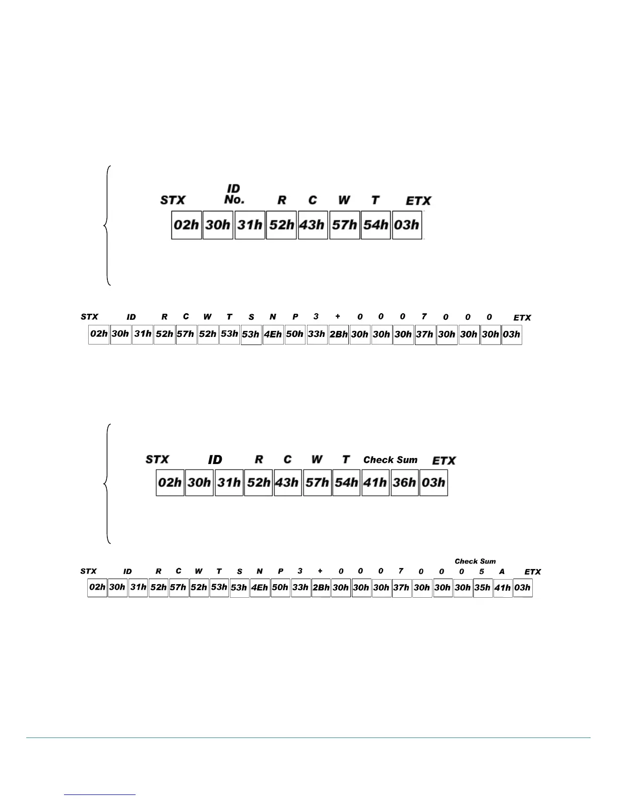 2) When PC requests to Indicator, Format(STX ID RCWT ETX) CHCEK SUM is used.