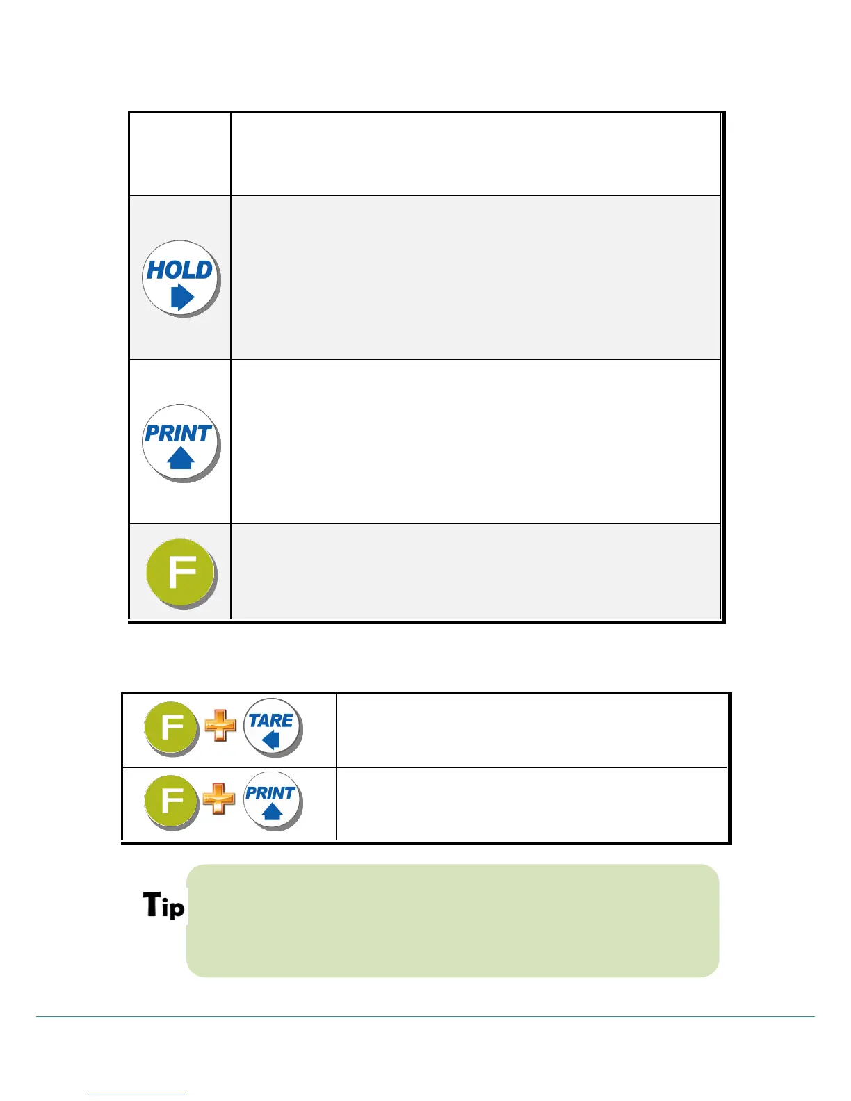 (From the second TARE setting, use this key)