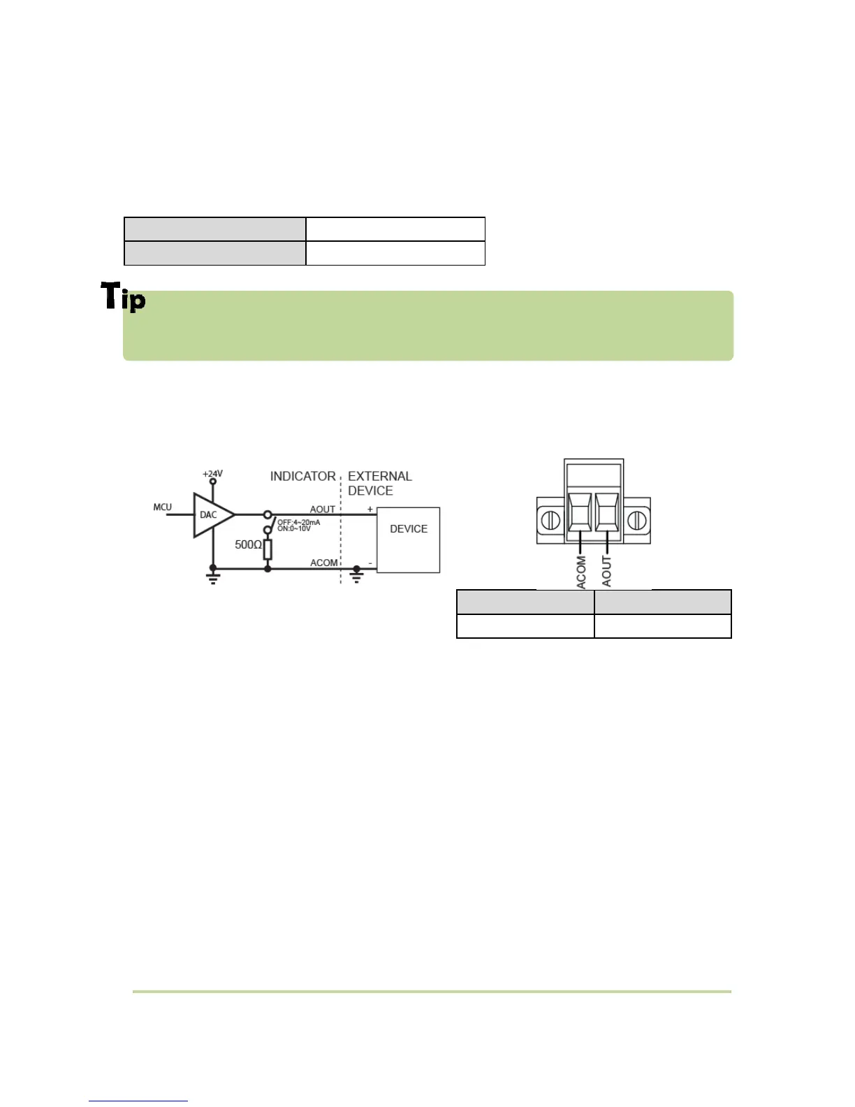 (1) Default analog output value is 0V(weight zero) ~ 10V(Full capacity).
