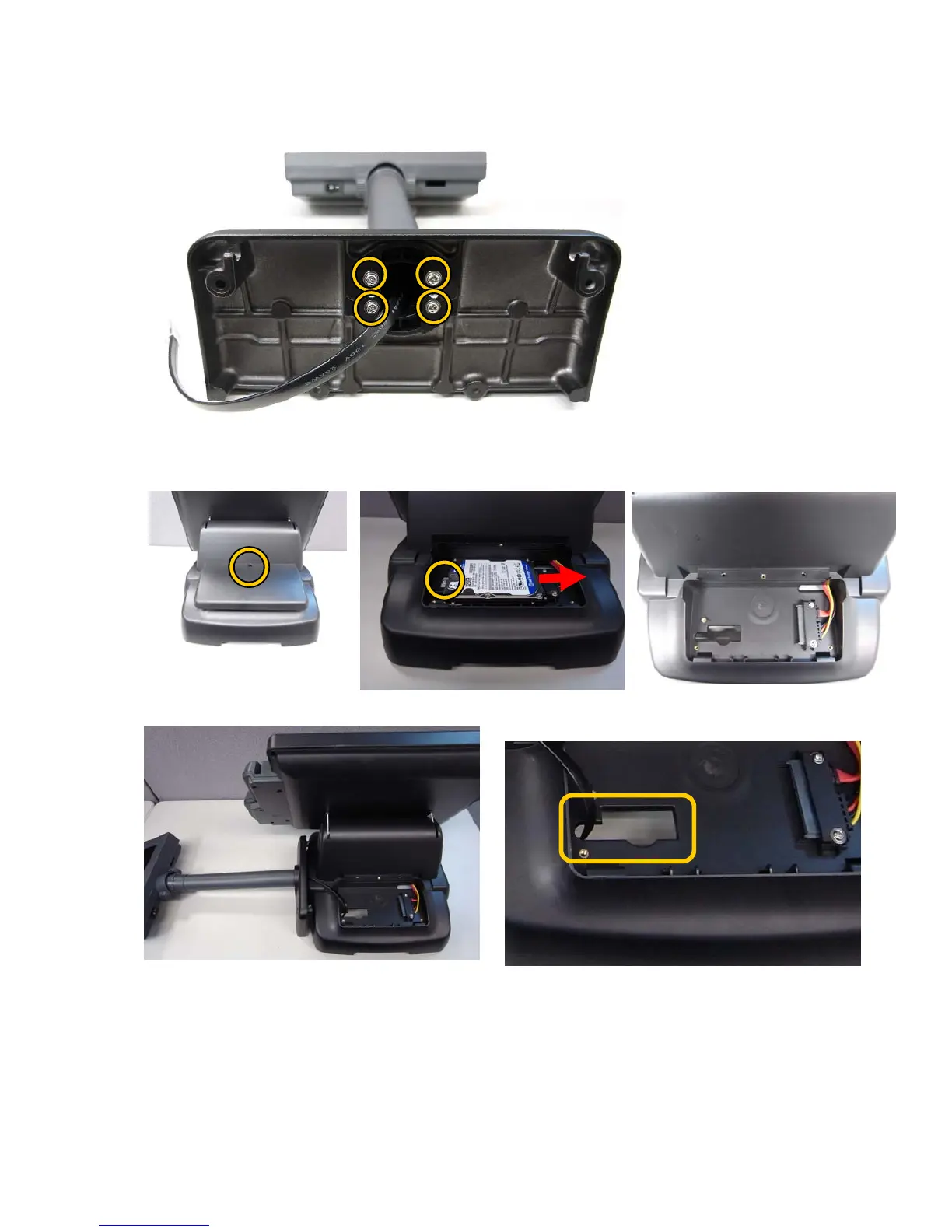3. Thread the VFD cable through the hole of the stand and route it as shown in the