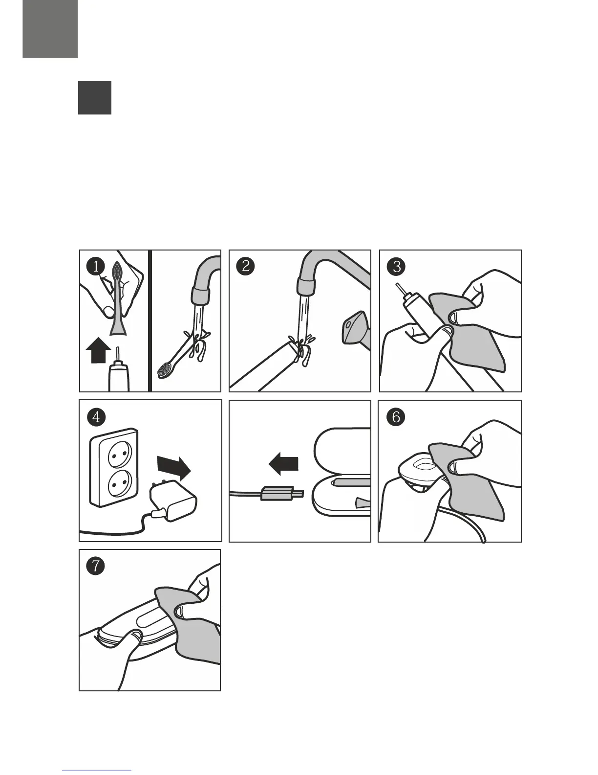 ze szczoteczki końcówkę i oczyść nasadę rękojeści, aby pozbyć się osadu