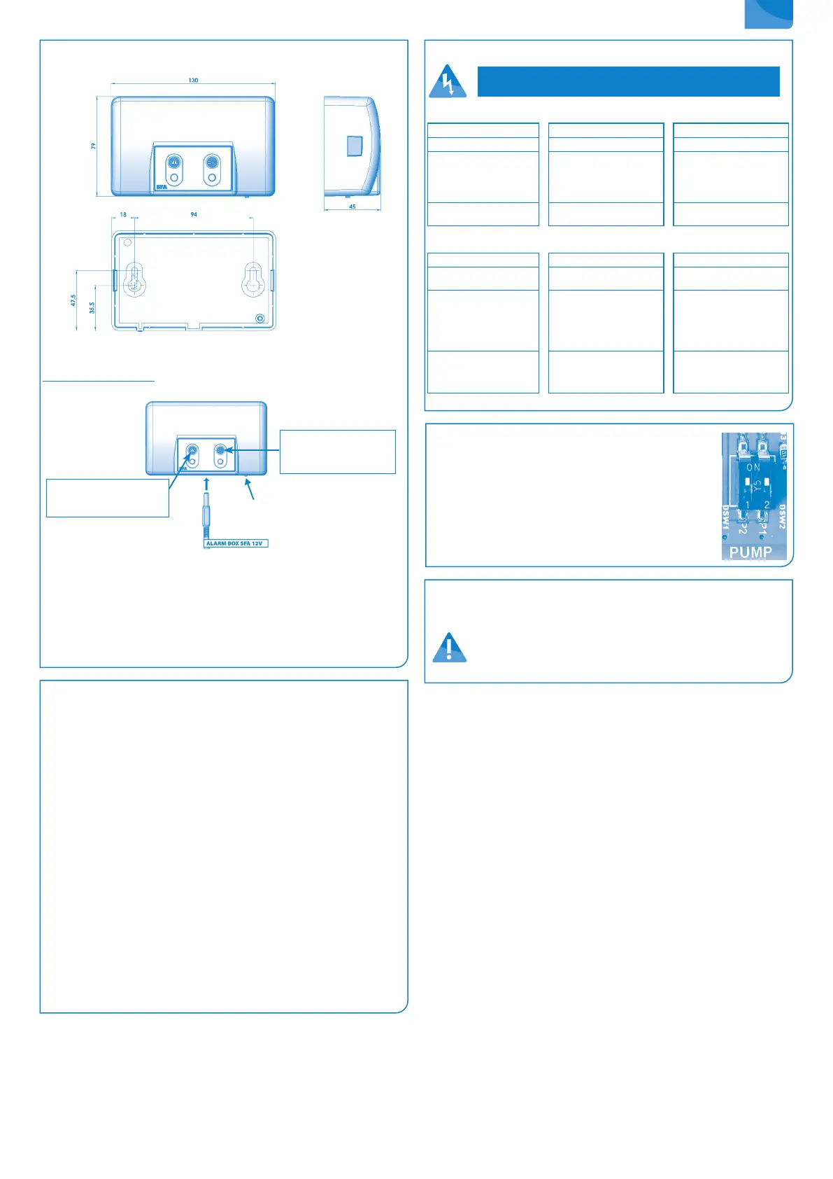 2/ 黄色“电源”LED指示灯表明报警单元的供电情况