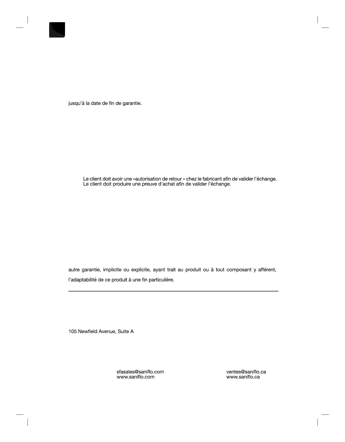 Sous réserve des modalités et conditions énoncées ci-dessous, SFA-SANIFLO INC., (ci-après