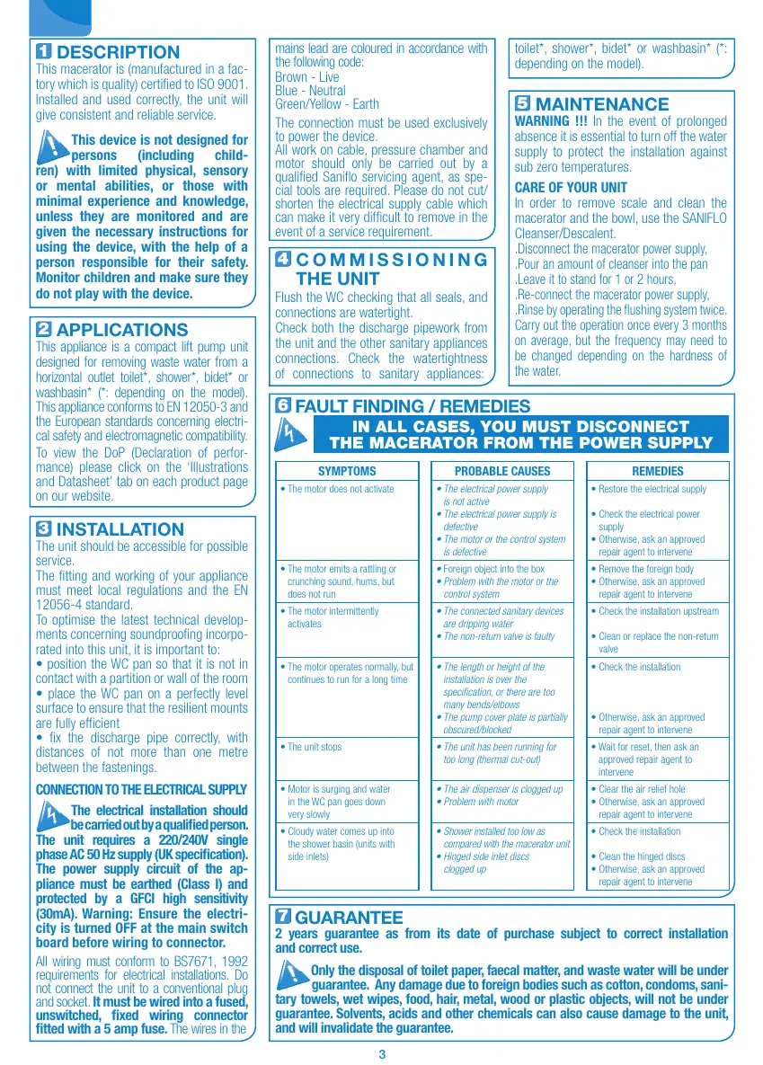 qualified Saniflo servicing agent, as spe-