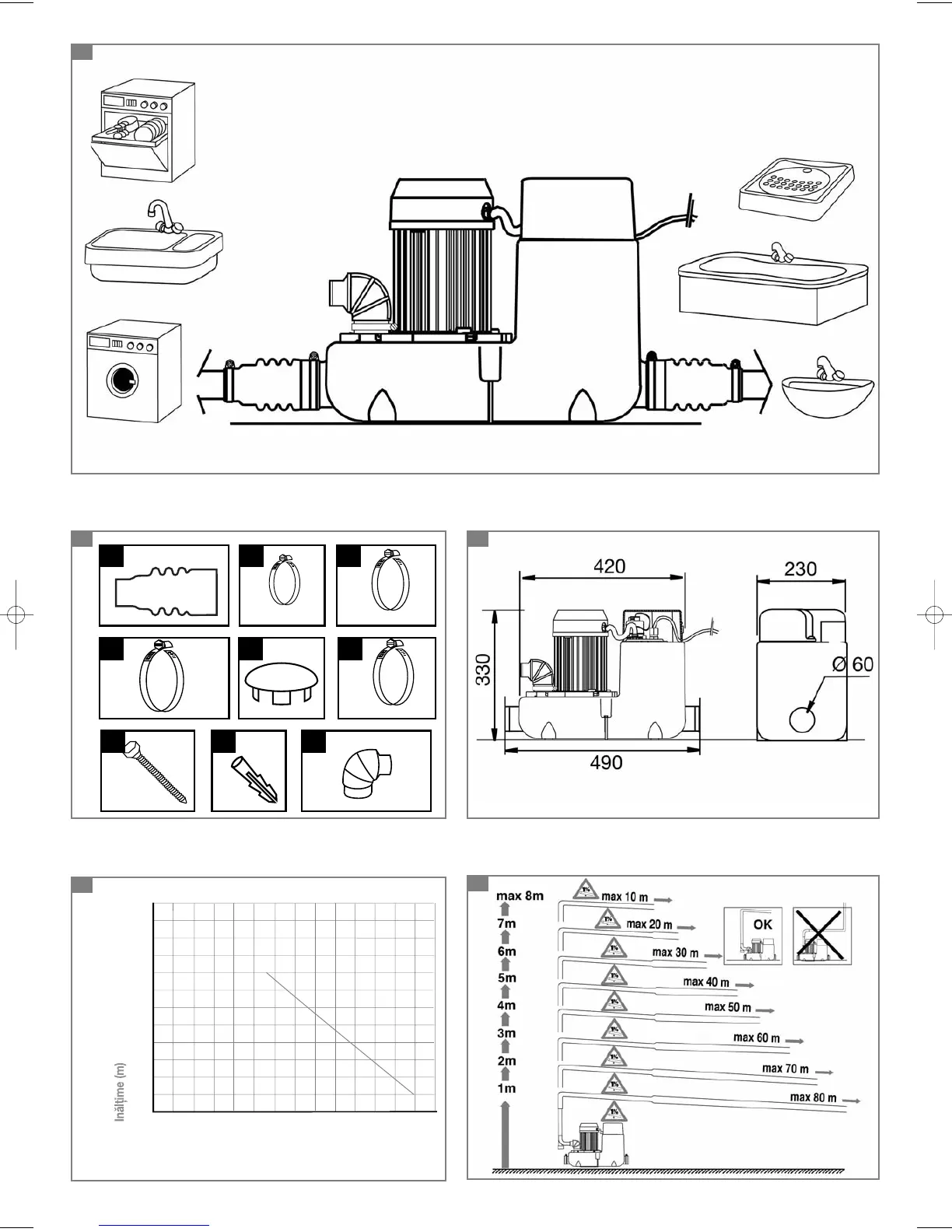 Portata (l/min) • Afvoercapaciteit (l/min) • Caudal (l/min)