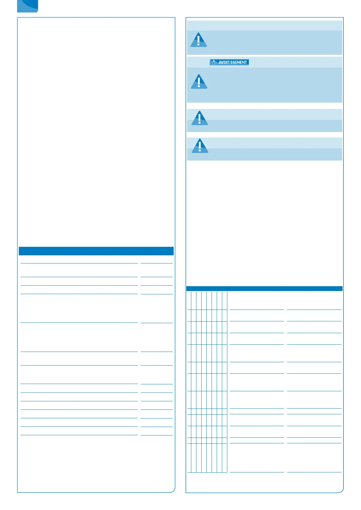Pour tous les problèmes non décrits dans le tableau ci-dessous, s’adresser au