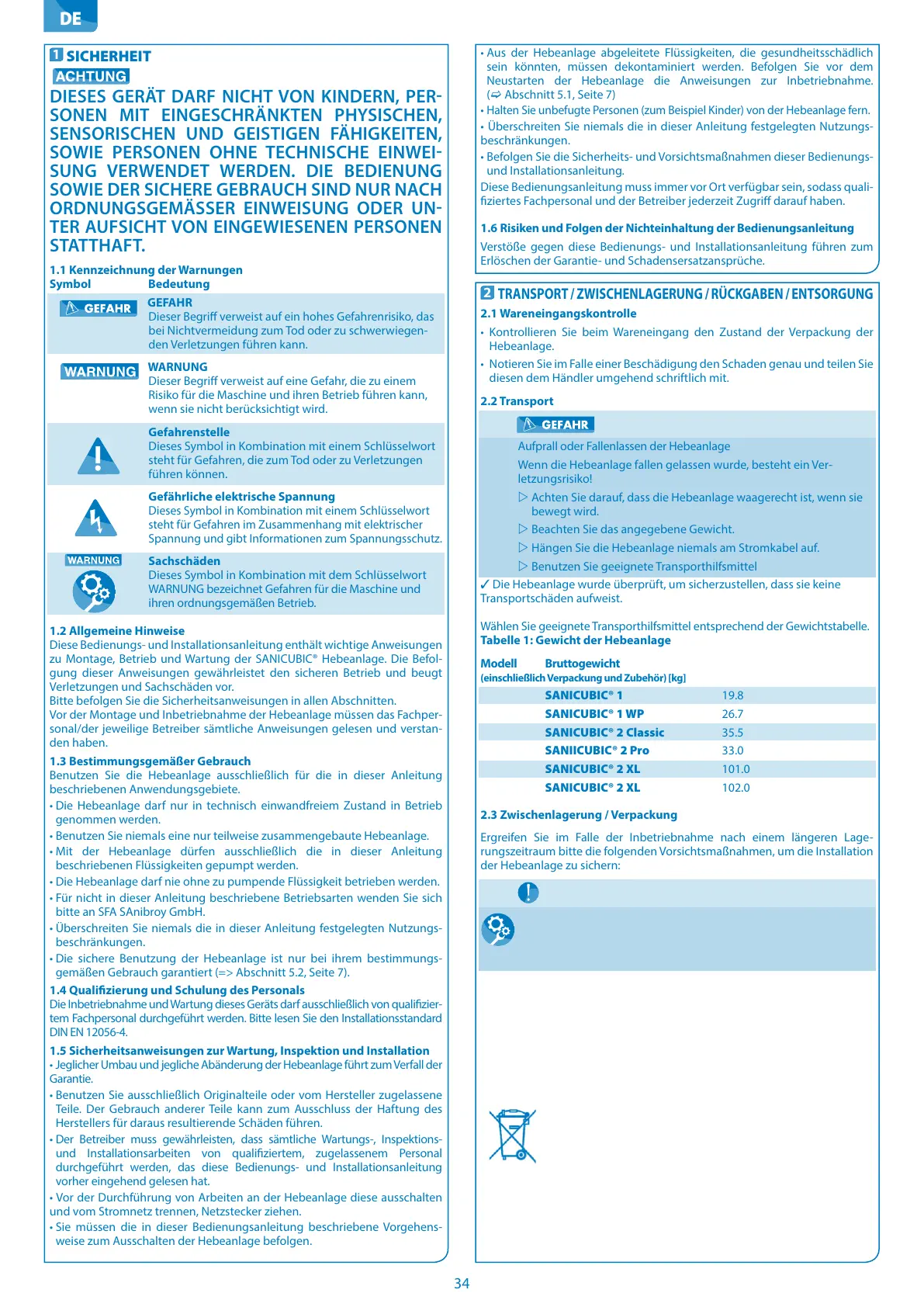 zu Montage, Betrieb und Wartung der SANICUBIC® Hebeanlage. Die Befol-
