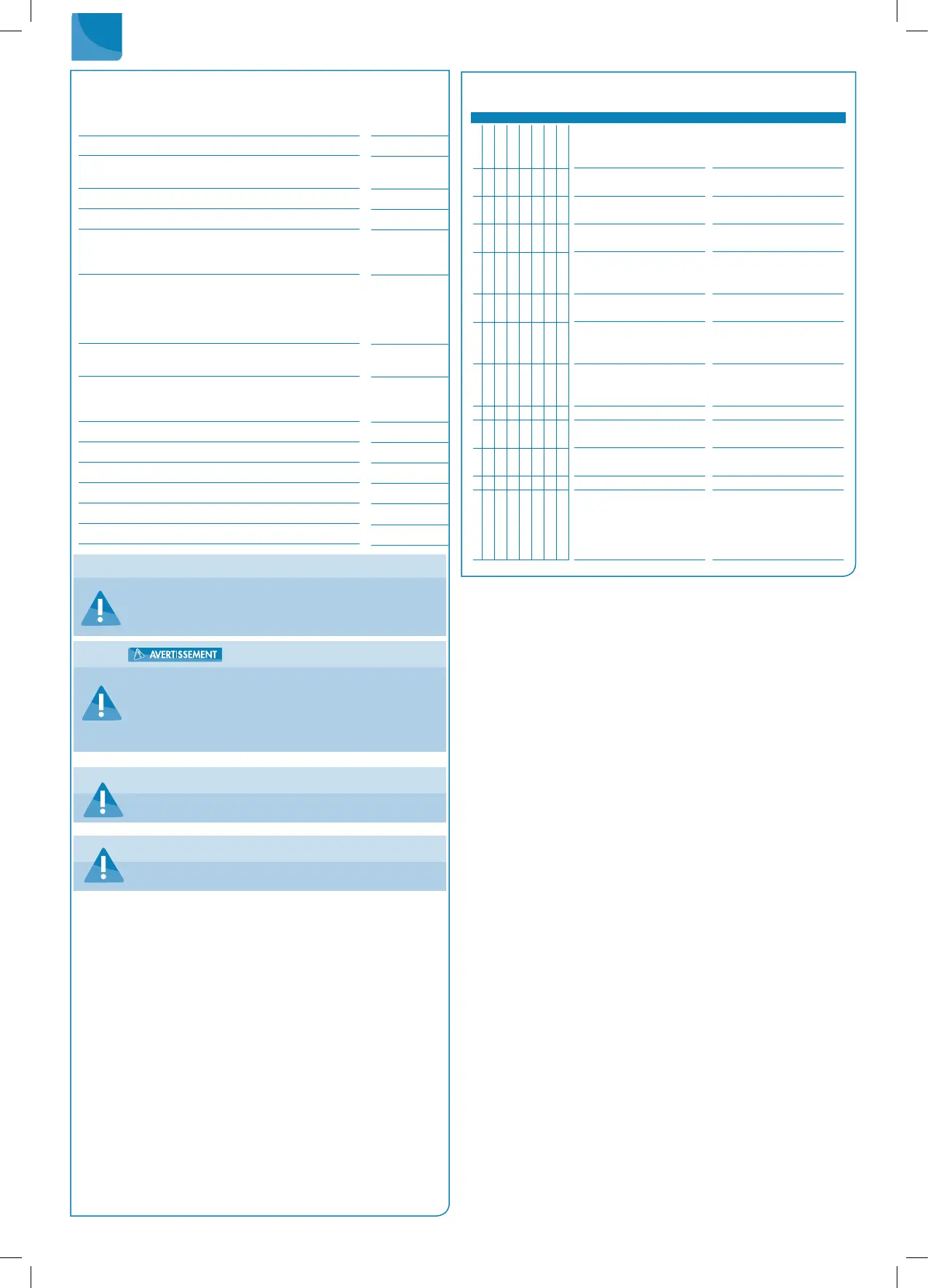 Pour tous les problèmes non décrits dans le tableau ci-dessous, s’adresser au