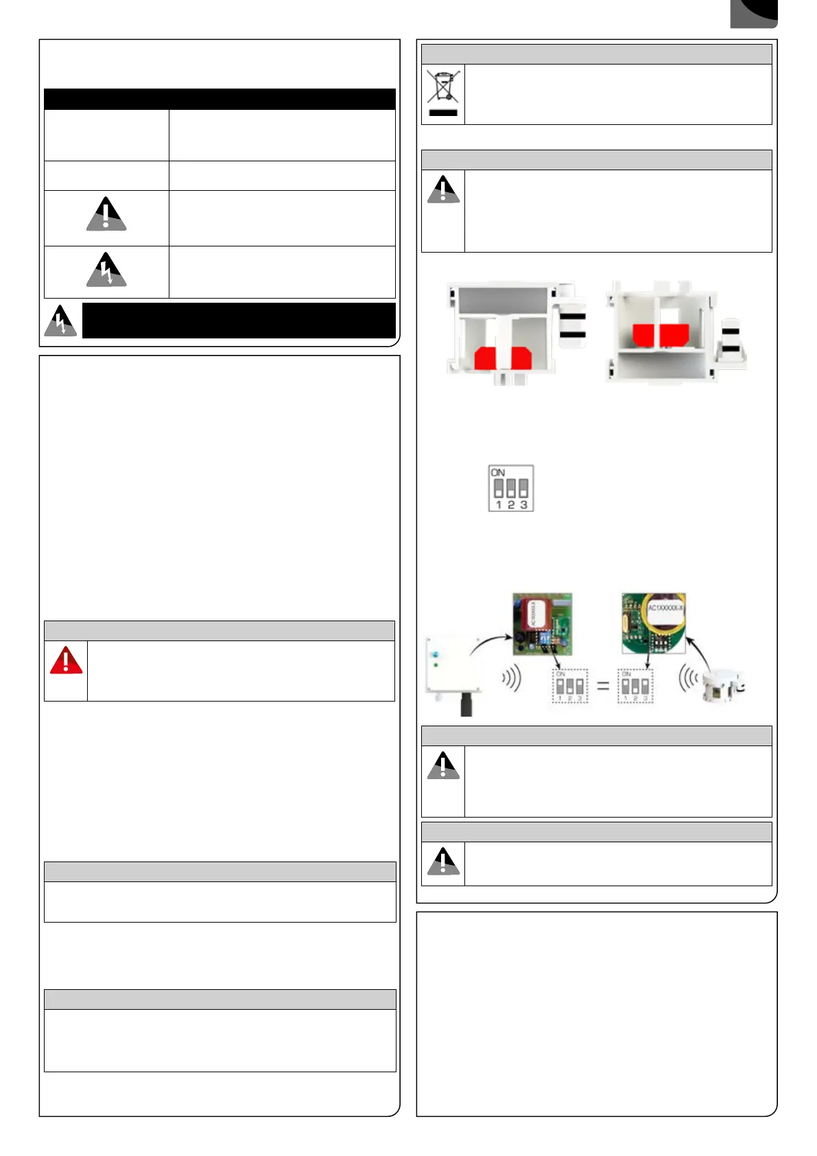 i nadajniku, przesuwając 3 przełączniki znajdujące się na 2 kartach: