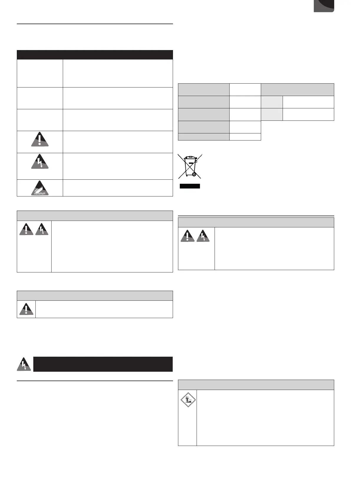 Rischio di tagli, rischio di scosse elettriche.