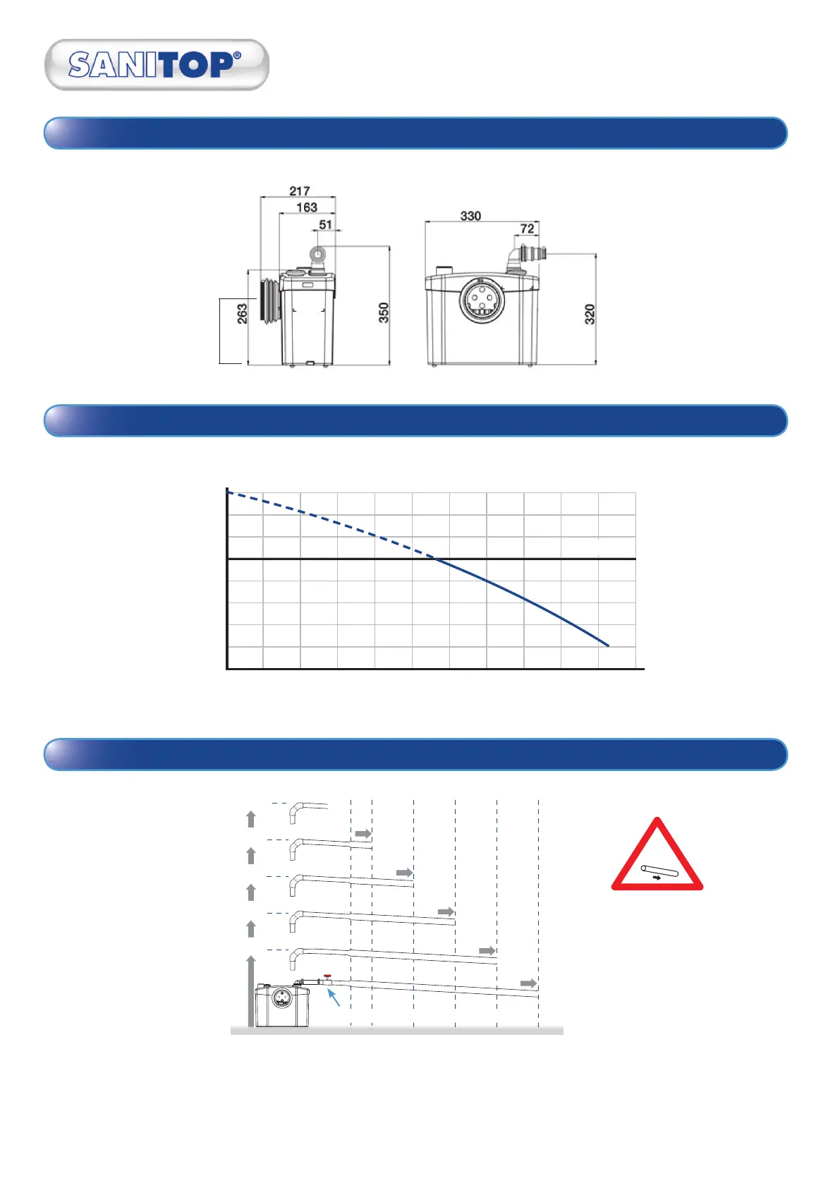 Following vertical lift, increase discharge pipe diameter by one size on the Horizontal run to Sewer or vent connection.