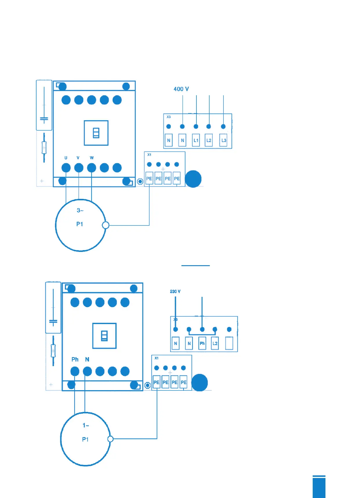 For 230V pumps, a bridge between N-L2 is required in the mains connection.