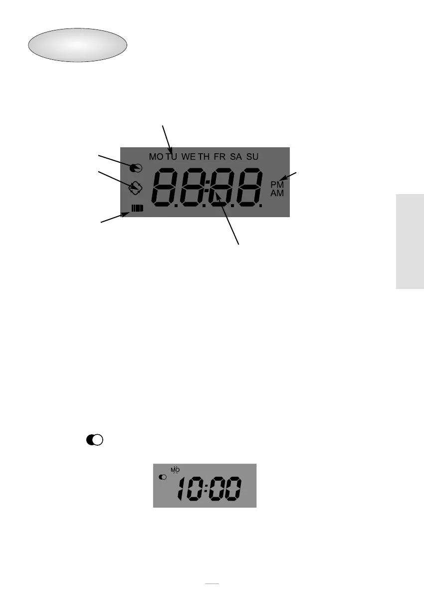 • Time: xx:xx with flashing “:”.