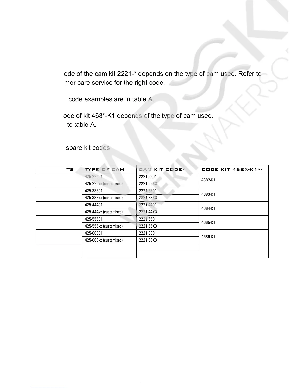 (**):The code of kit 468*-K1 depends of the type of cam used.