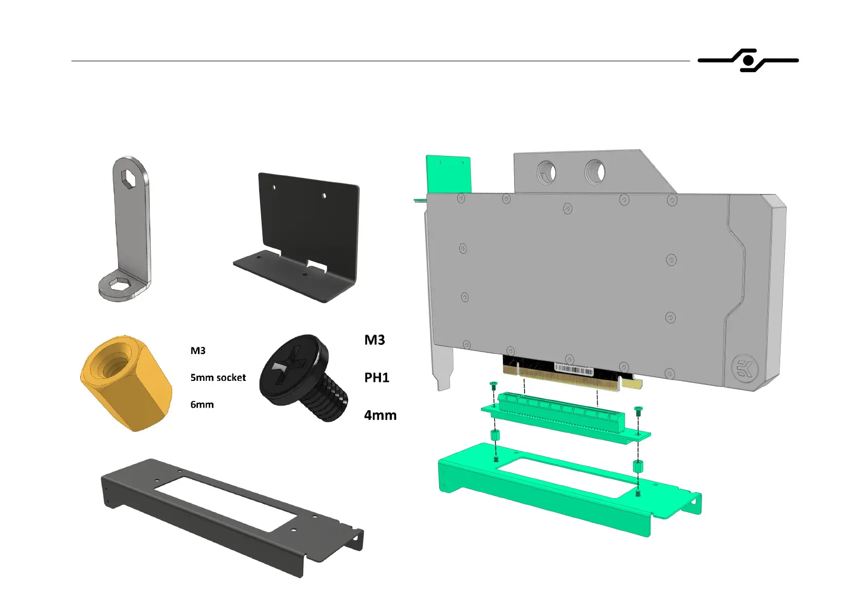- assemble the GPU, riser and upper GPU mounting bracket found in the kit like shown in the picture