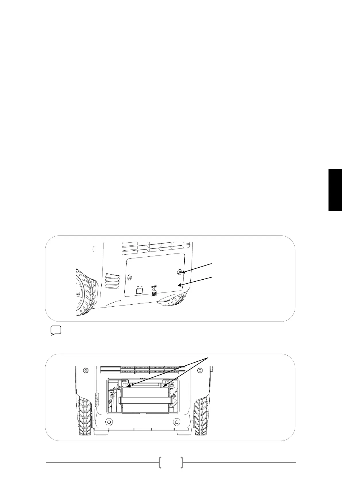 NOTE: Respect the polarity, connect the red cable (+) to the red terminal
