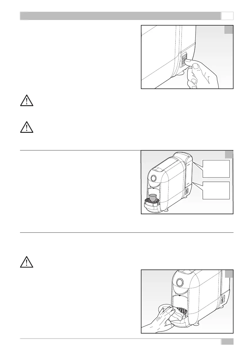 your hands or any other foreign object. Do not tamper the capsule insertion handle or any other