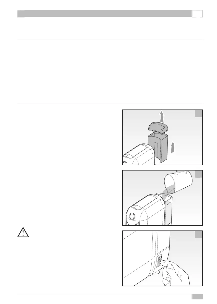 • Die Kaffeemaschine durch Drücken des Hauptschalters ❽