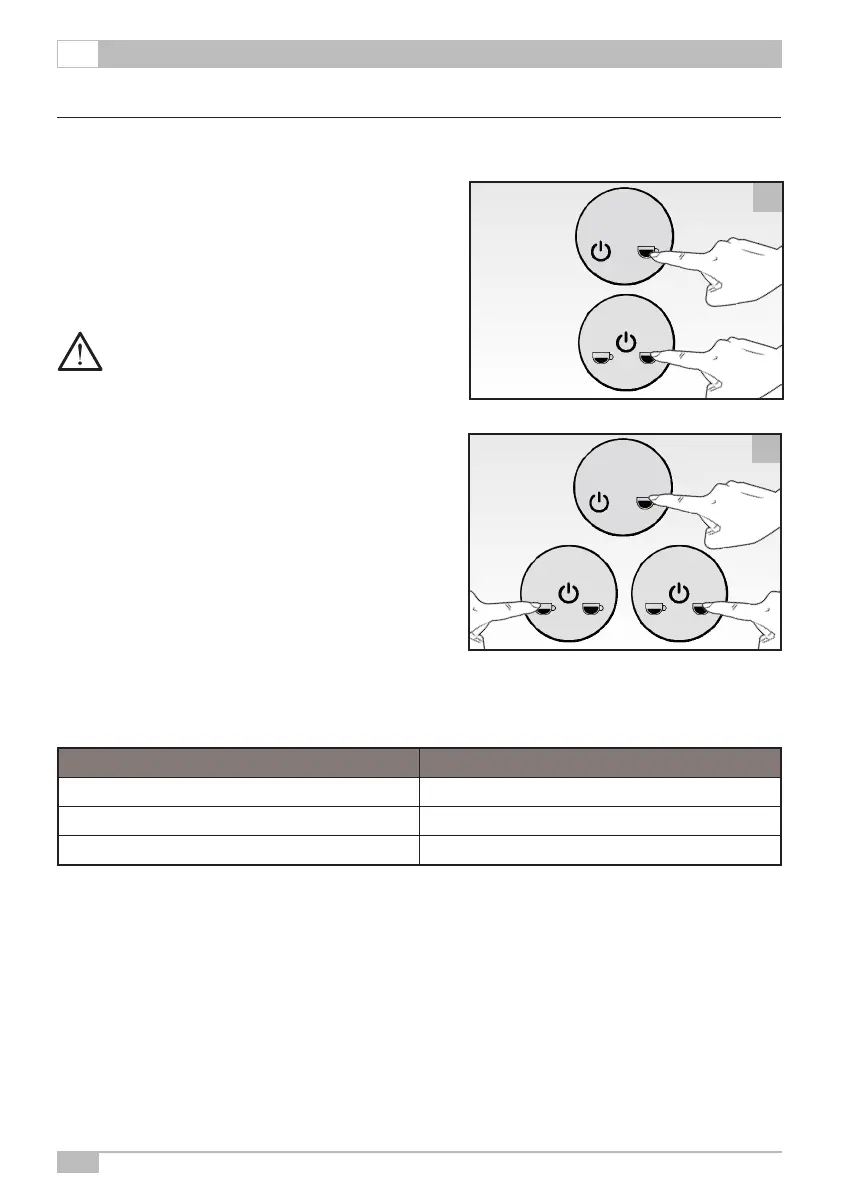 • Berühren und halten Sie die Kaffee-Ausgabetasten 3 Se-