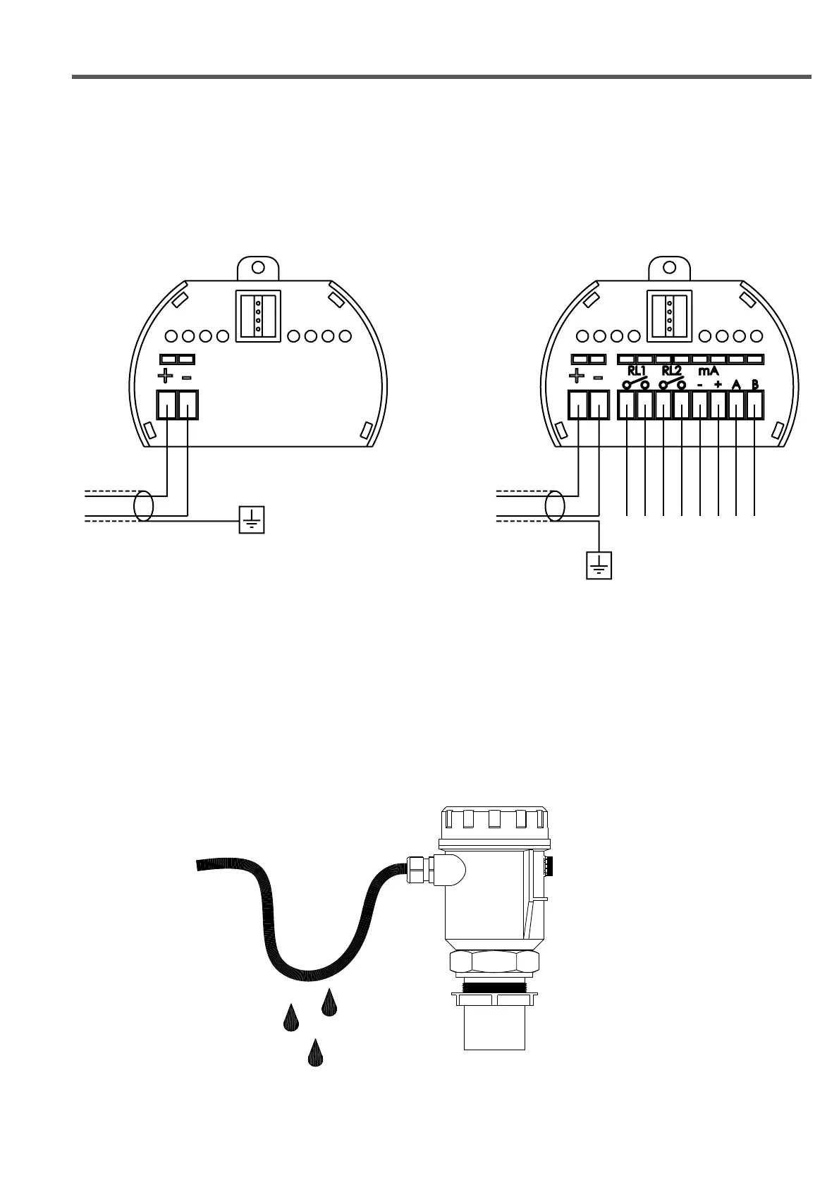 - position the cable so that it forms a downward curve at the M20 output; in this way the condensation and/or rain