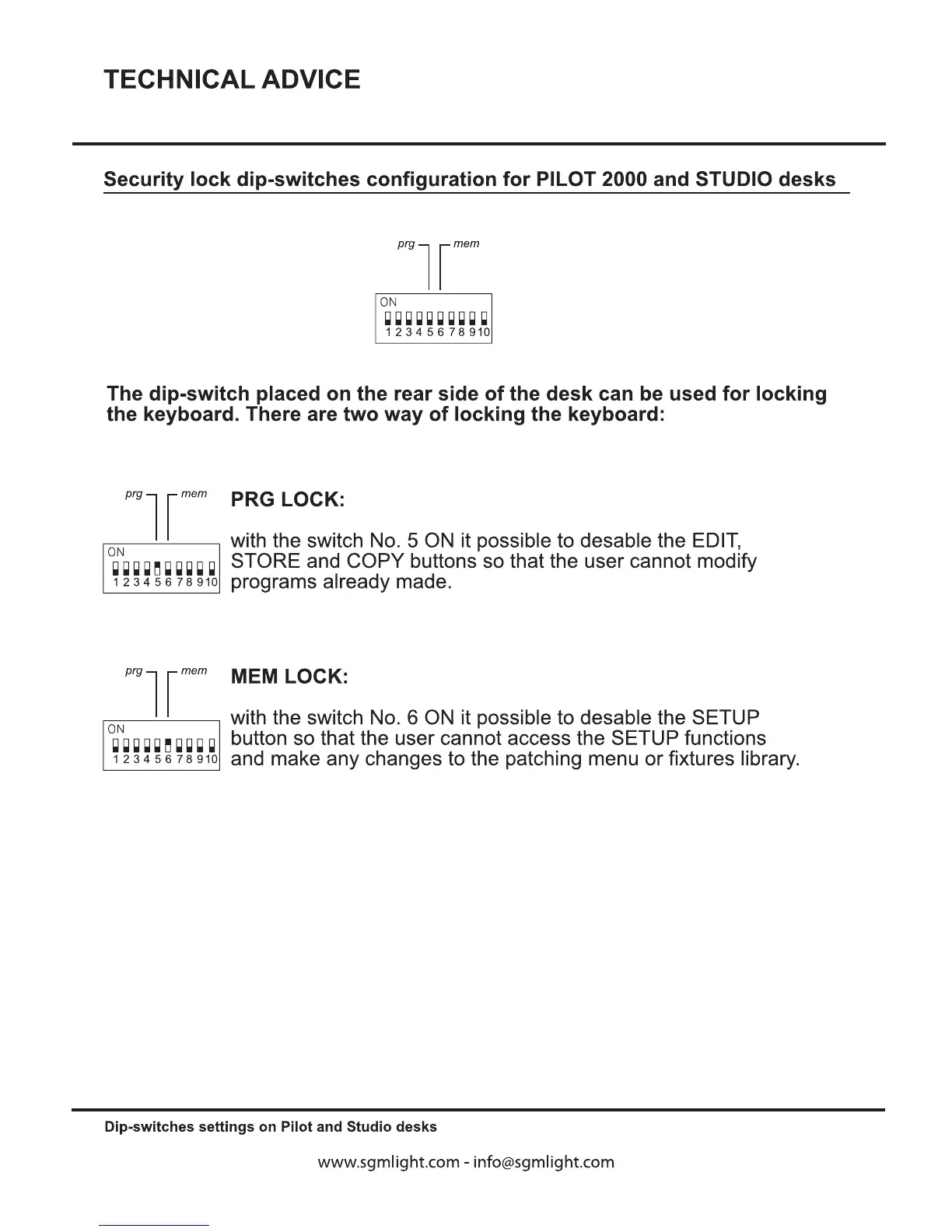 SGM Pilot 2000 - Security Lock Dip-Switches; PRG LOCK and MEM LOCK Functions