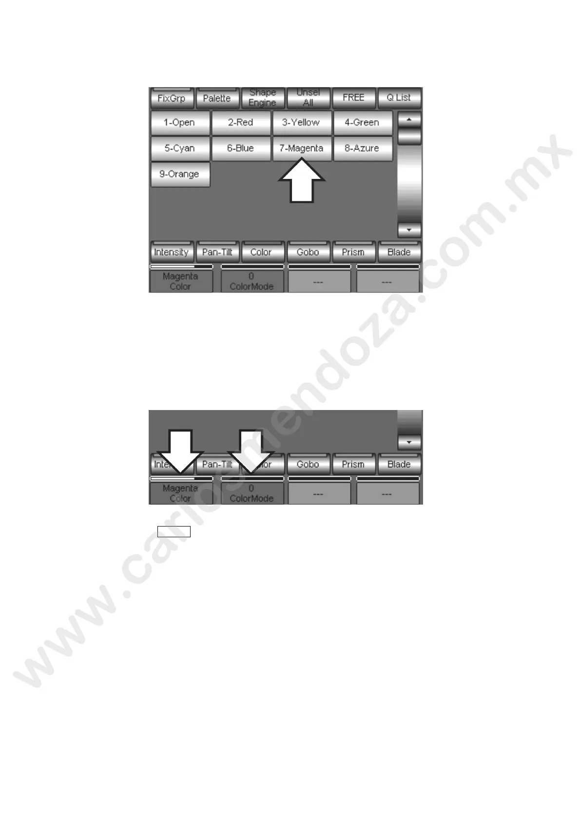 Press the Palette of the color which you want to apply to the Cue. In e a ve example we have