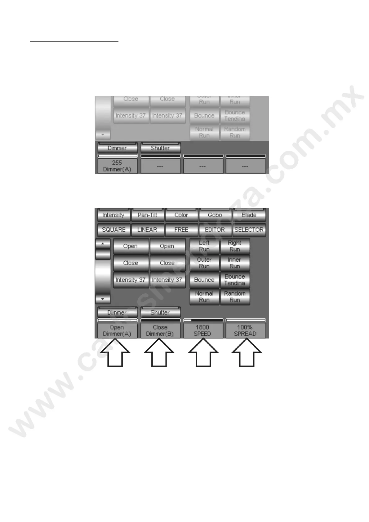 The figure shows now the effect applied to the Dimmer Attribute and the relevant parameters now are: