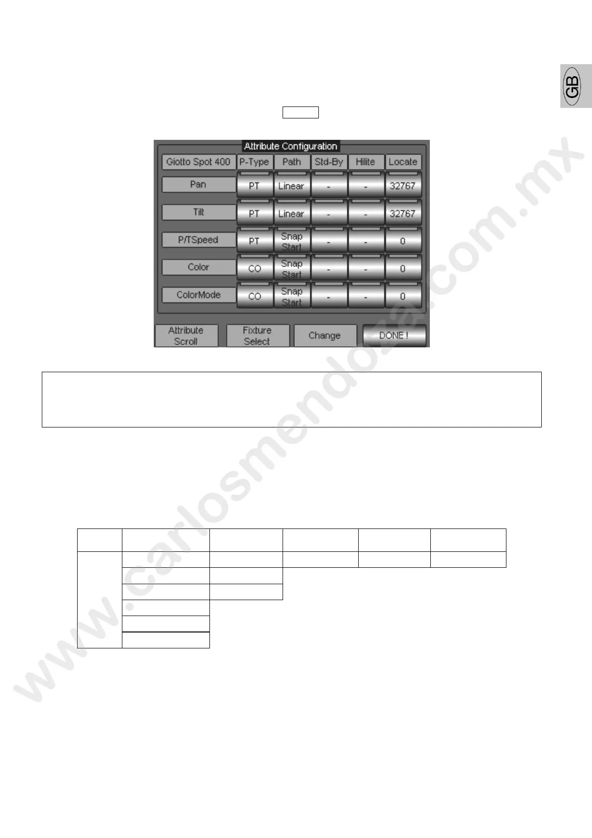 Each Attribute (channel) for each type of fixtu e patched, has got an amount of features which can