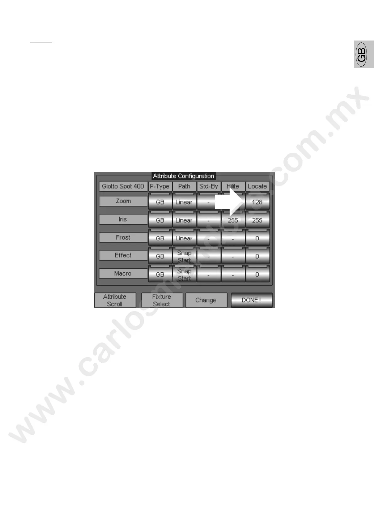 The “Locate” column delineates the value that each Fixture Attribute has to take up by the LOCATE