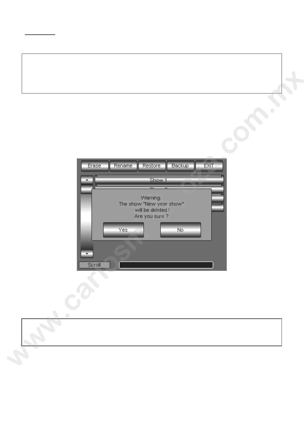 The Erase command allows to cancel the Shows previously saved into the Compact flash.
