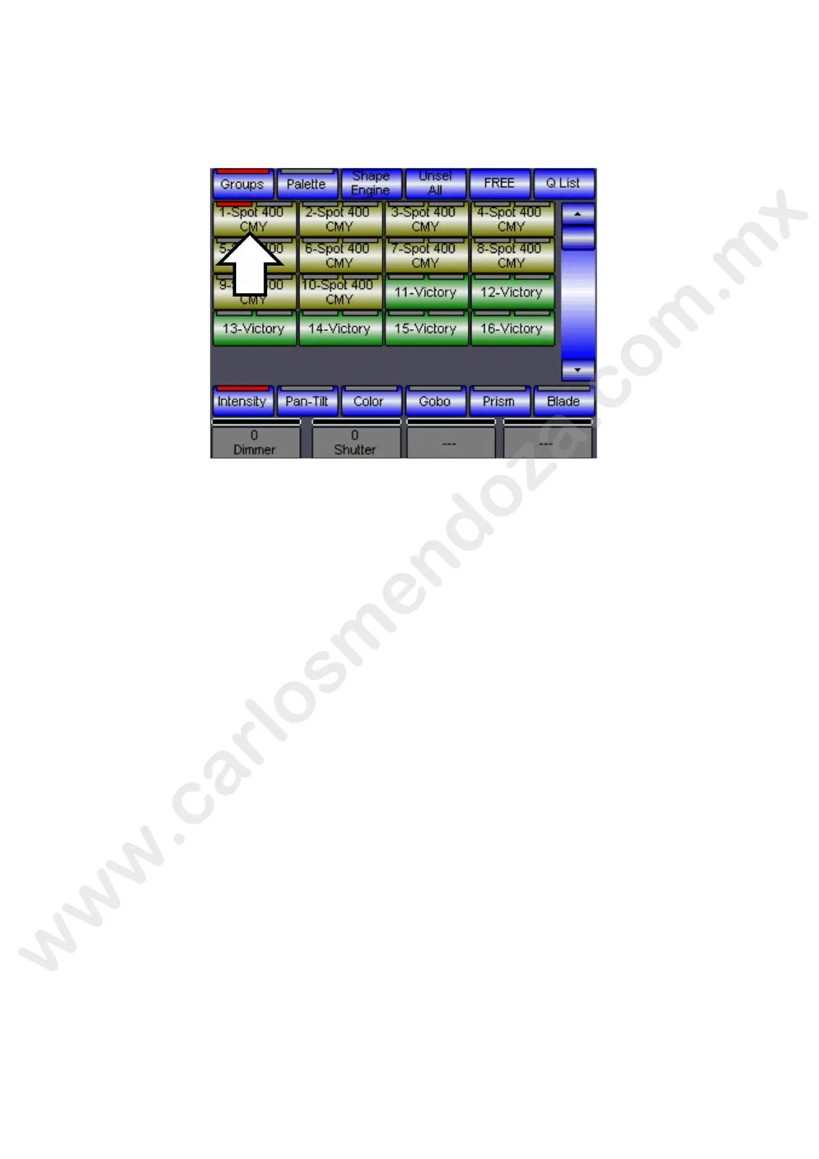 control 10 Giotto Spot-400 CMY and 6 Victory II 250. The selection of the first Giotto-400 is easily