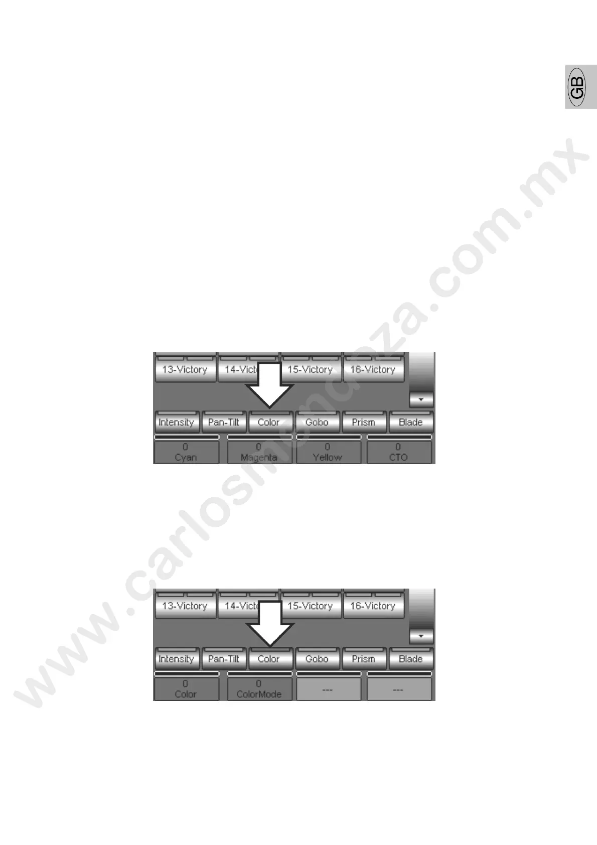 In example, if a Giotto400 CMY is selected, by pressing the Color key you enable, through the fou wheels,