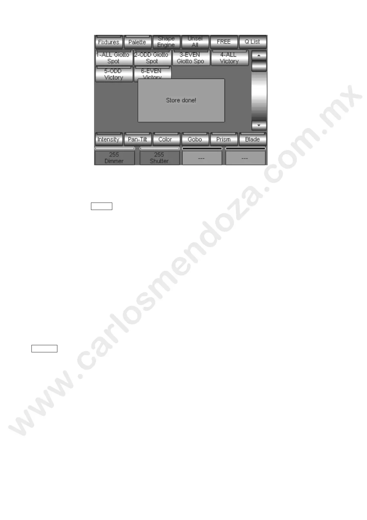It is very important to remember that each Store oper tion will stack the new Cue at the end of the Cue-