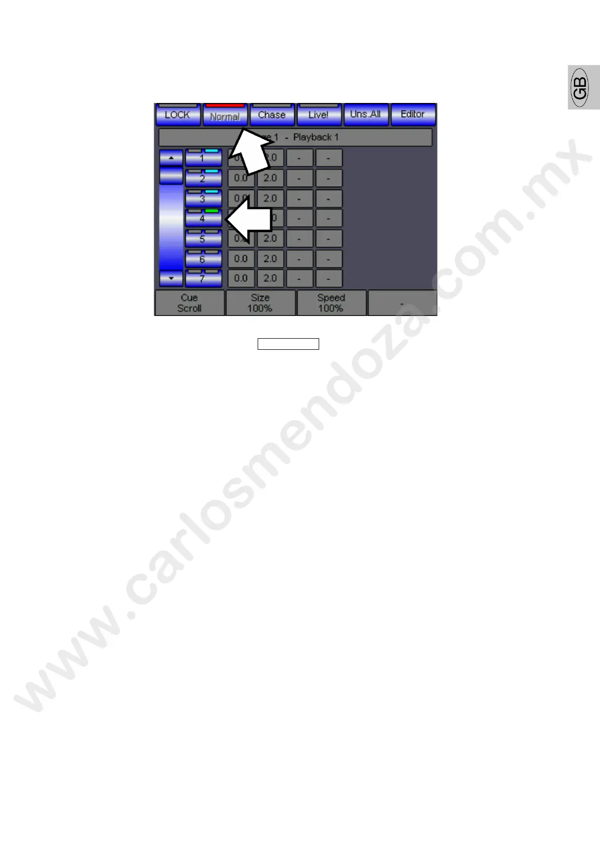 In the “Normal” Playback mode, pressing the PLAYBACKS keys is the ma n ction for the Cues activation.