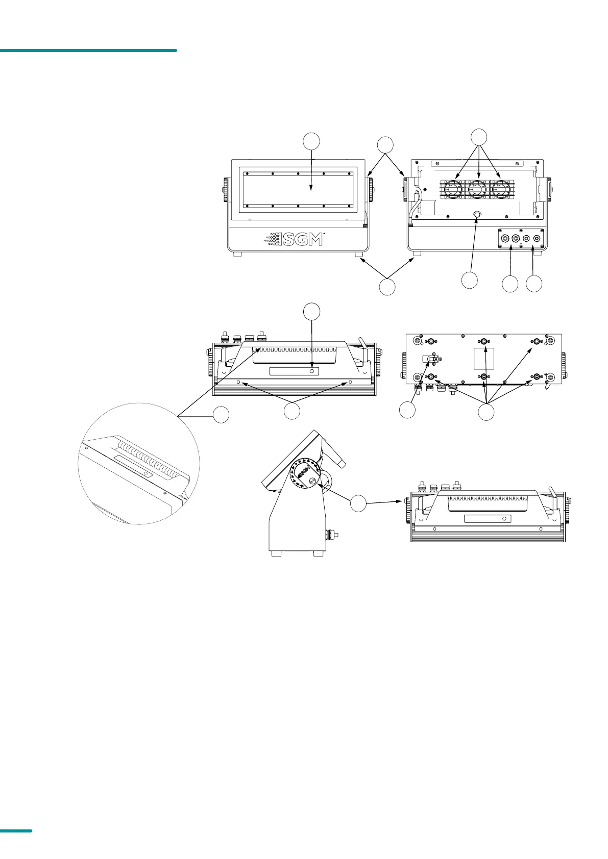 J: Barndoors attachment points (x2)