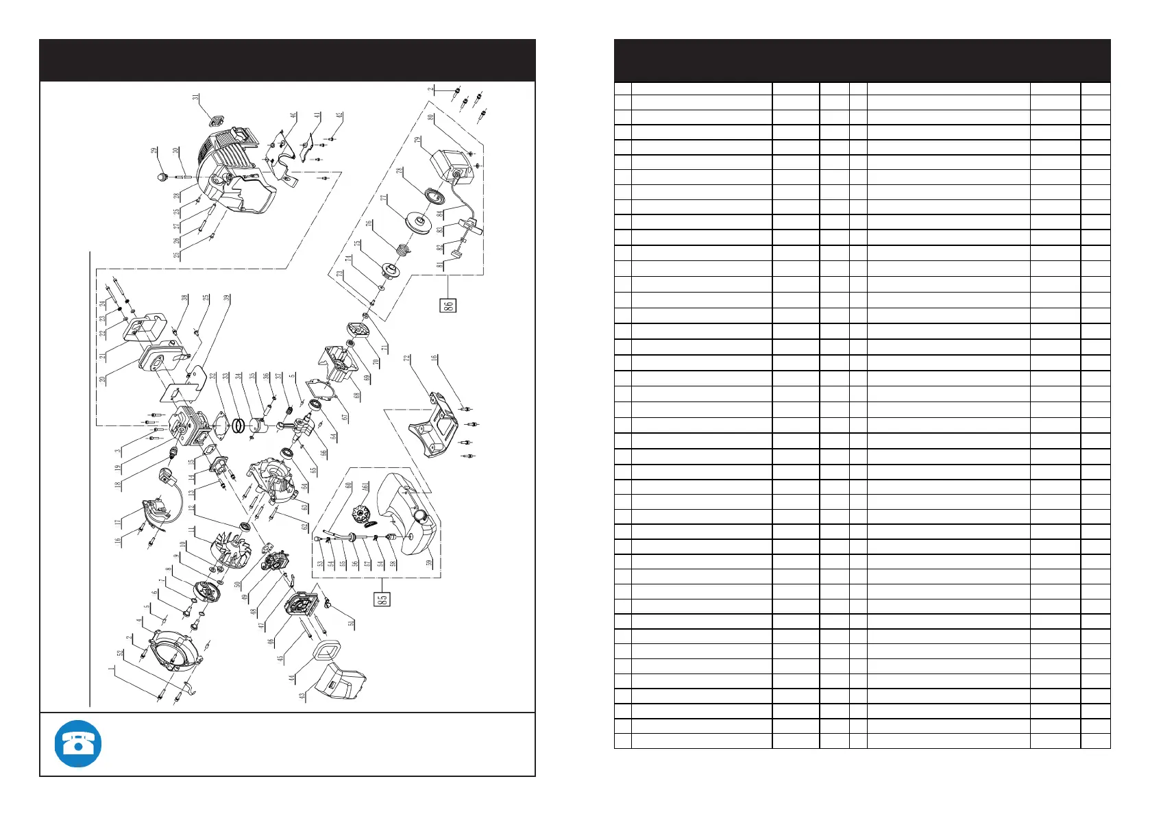 43 Cover for air lter 904252 1 86 Recoil starter assembly 904291 1