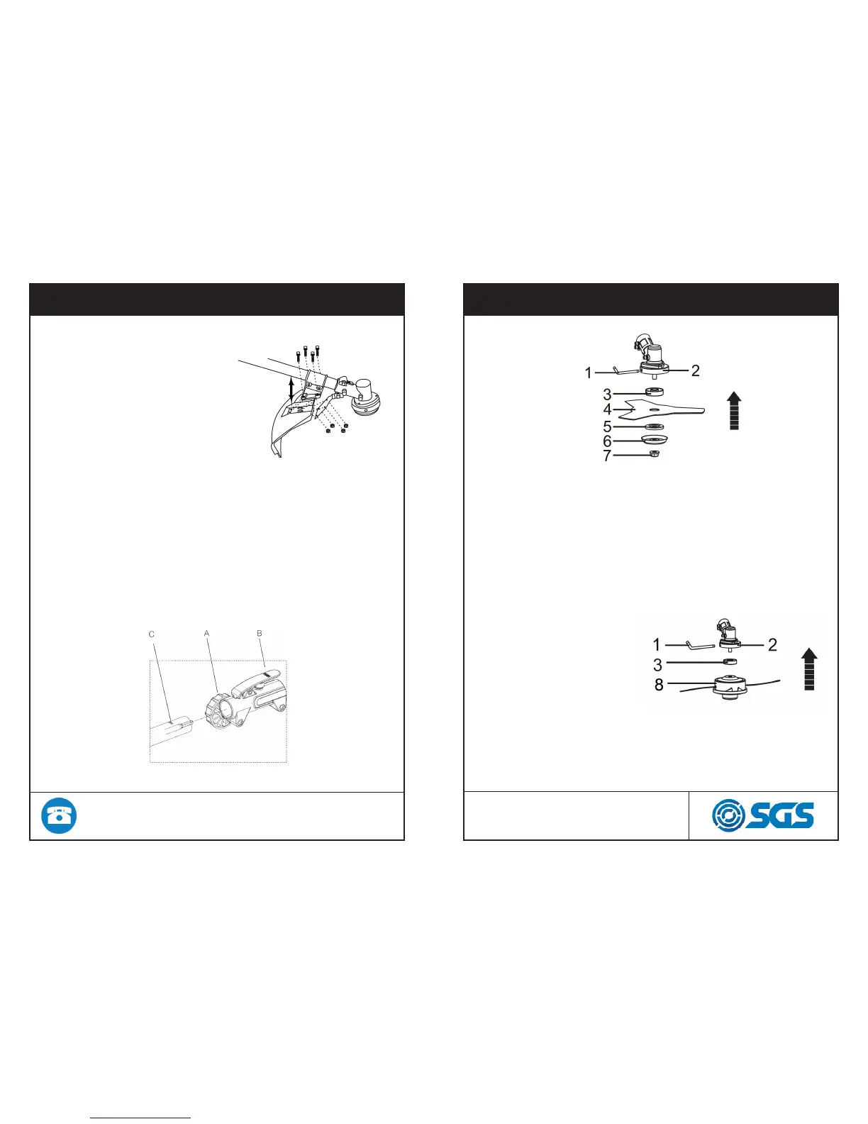 2. Mount the blade (4) and the washer (5) onto the axle.