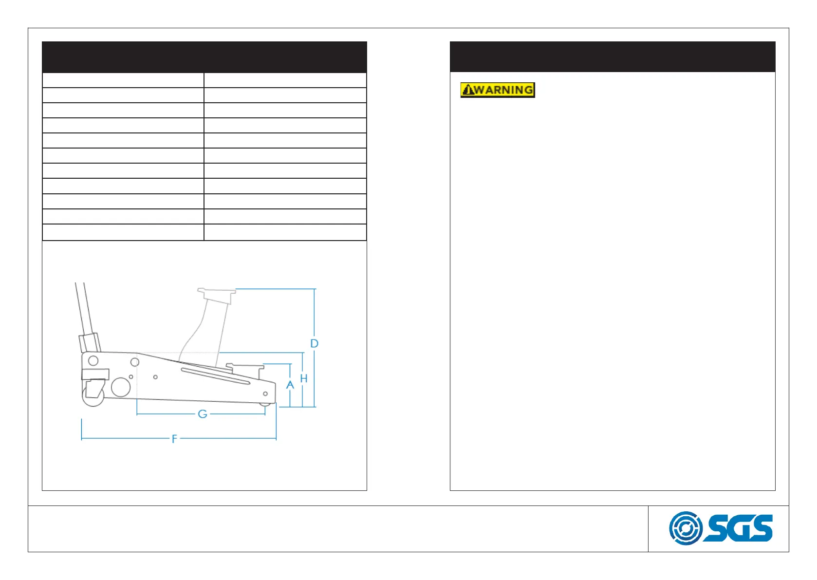 9. Never work underneath a vehicle supported only by this jack. If