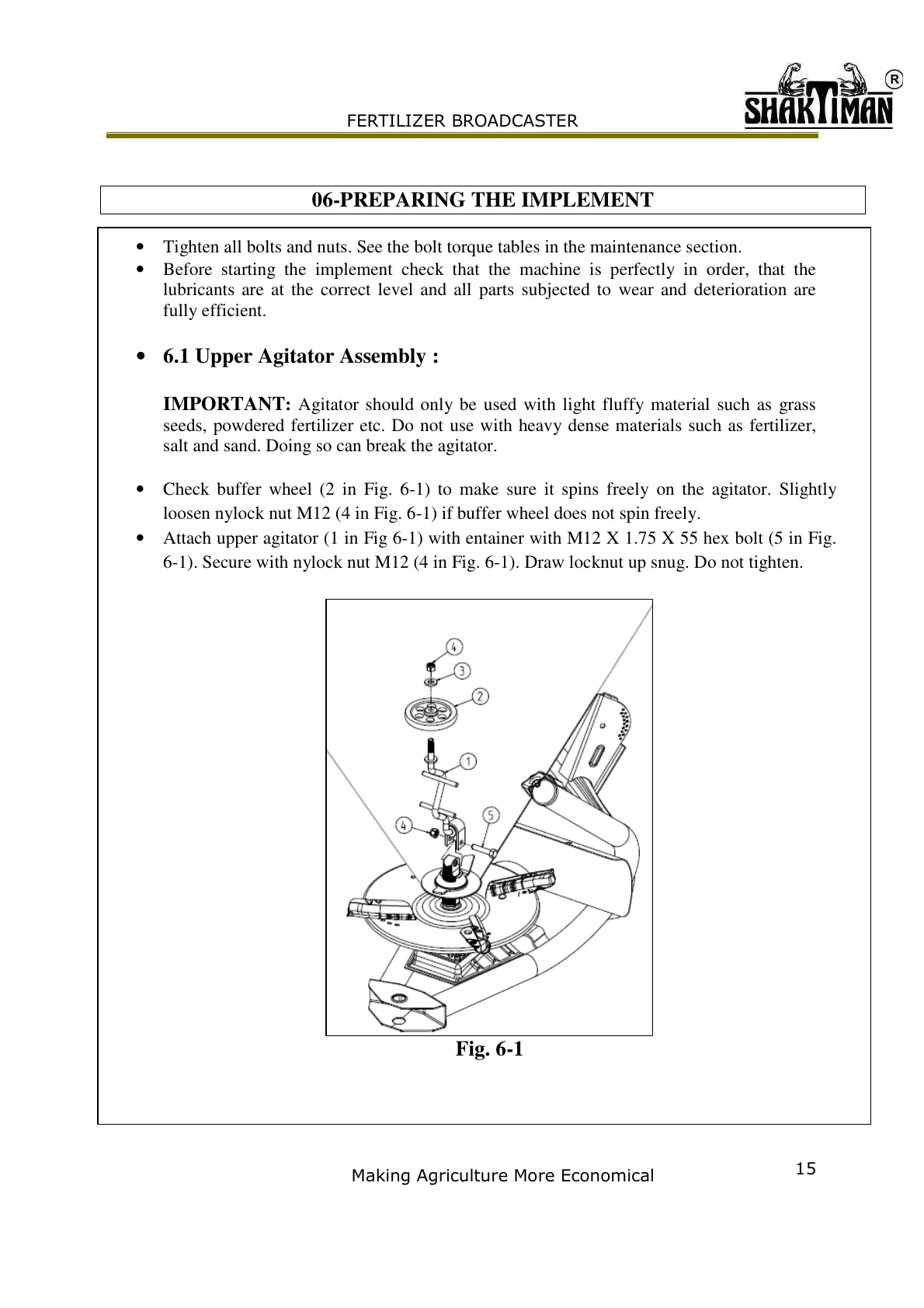 • Attach upper agitator (1 in Fig 6-1) with entainer with M12 X 1.75 X 55 hex bolt (5 in Fig.