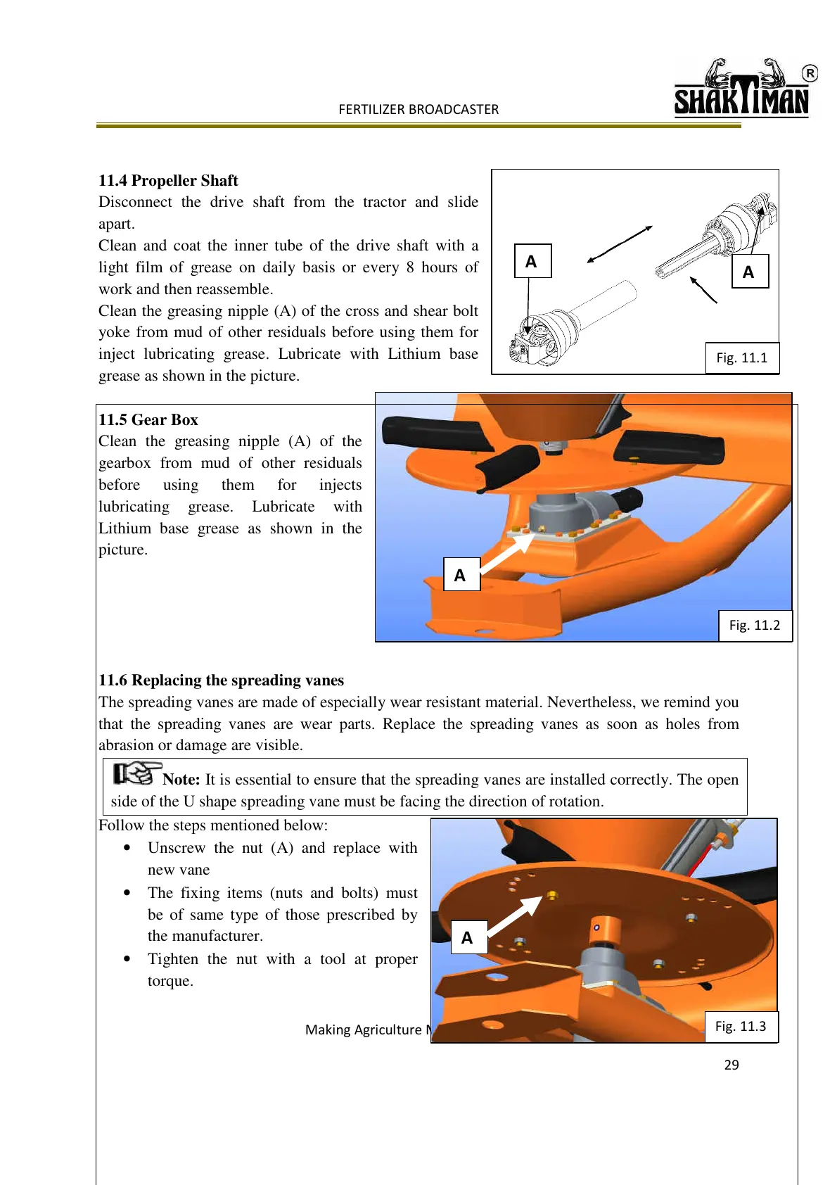 that the spreading vanes are wear parts. Replace the spreading vanes as soon as holes from