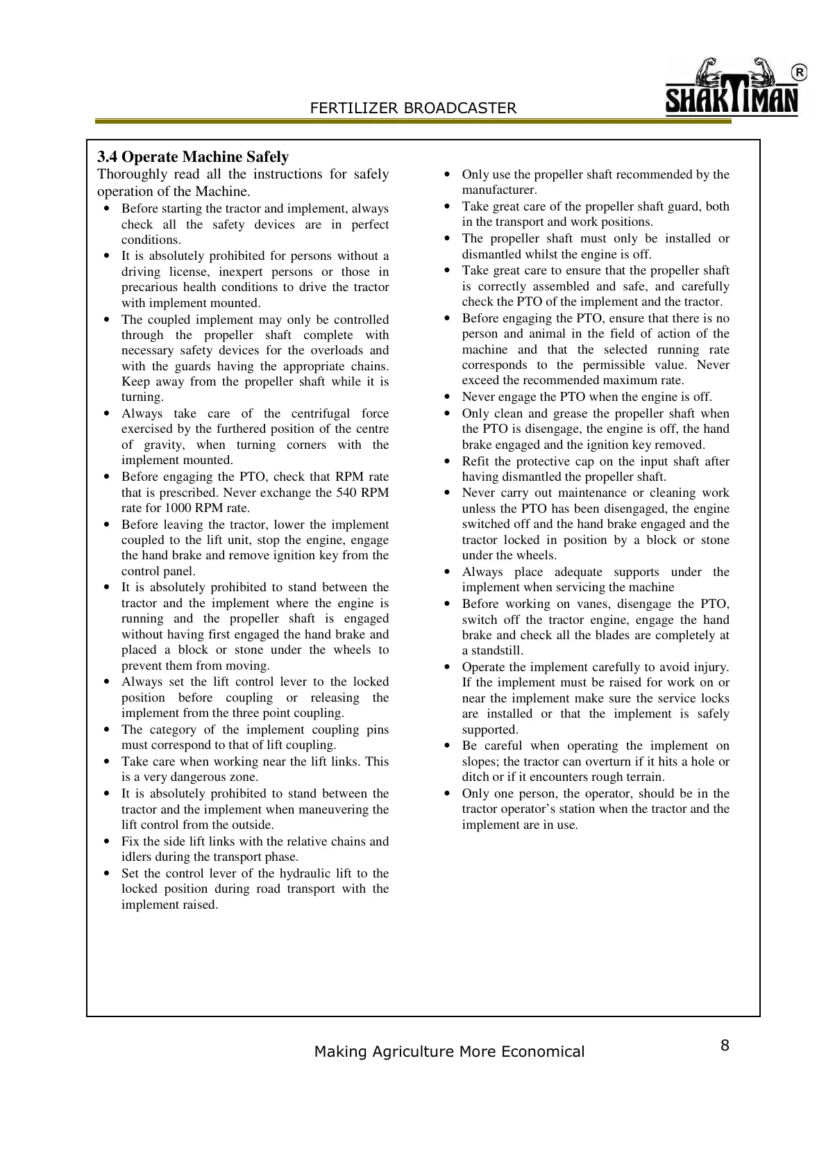 • Before engaging the PTO, ensure that there is no