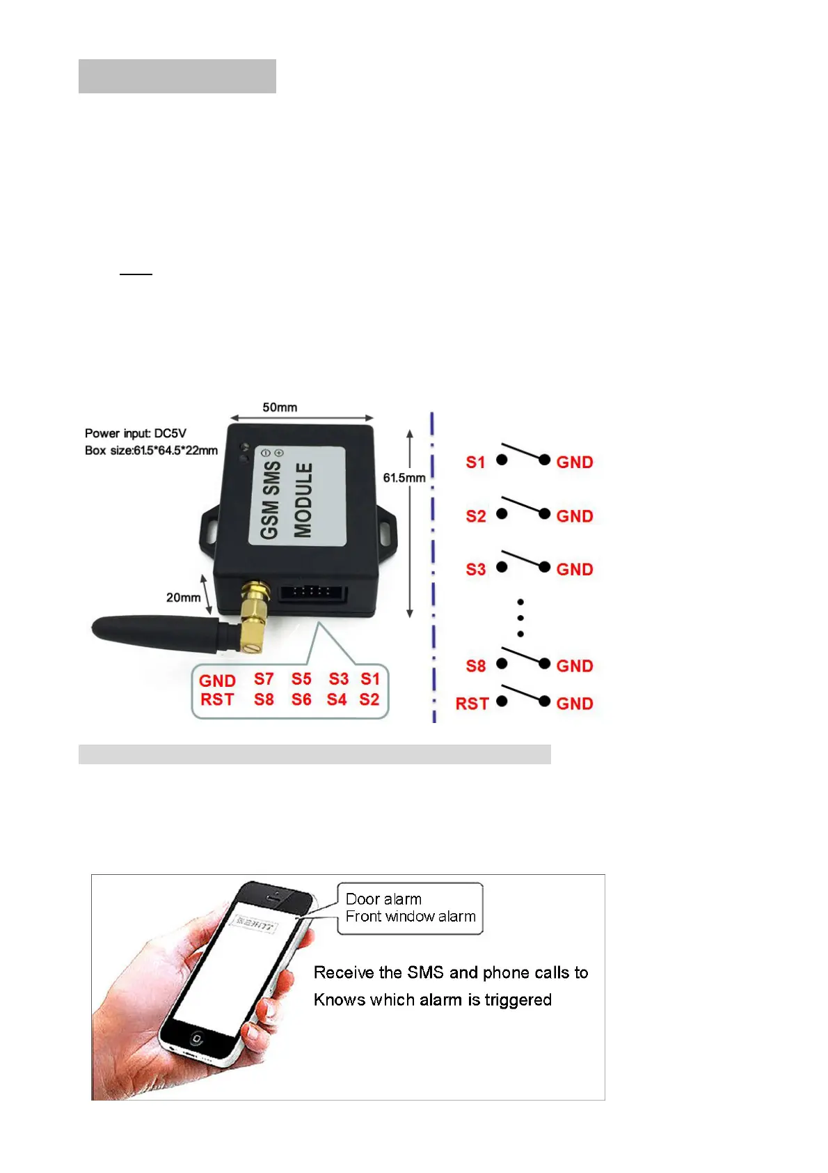 When any S1 to S8 input is shorted to GND,then will trigger the alarm