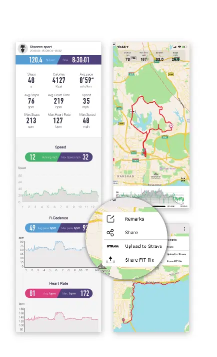 some of data in LCD display via shanren Sport App.