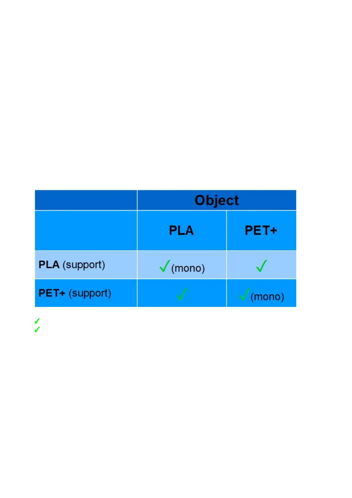 The current compatibility of the filaments and their “breakaway filaments” is shown in the