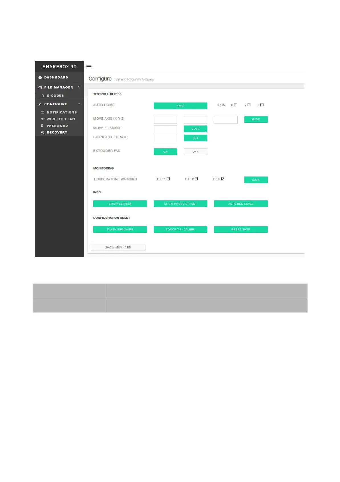 ○ Move Filament : Extrude or retracts (use positive and negative numbers)