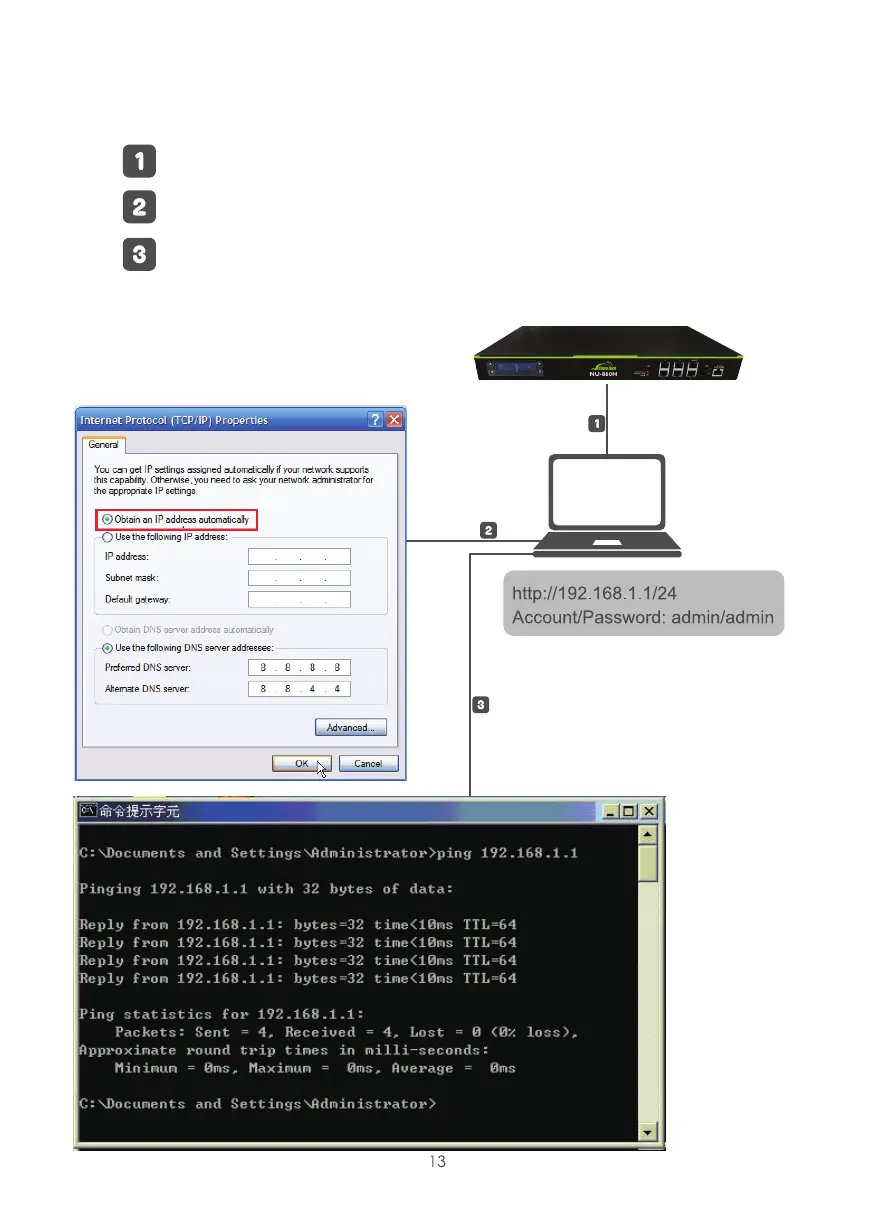 After getting the IP, ping 192.168.1.1 to ensure network connection.