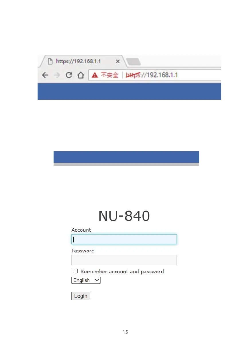 1.1 Open the web browser and enter https://192.168.1.1 in the address bar.