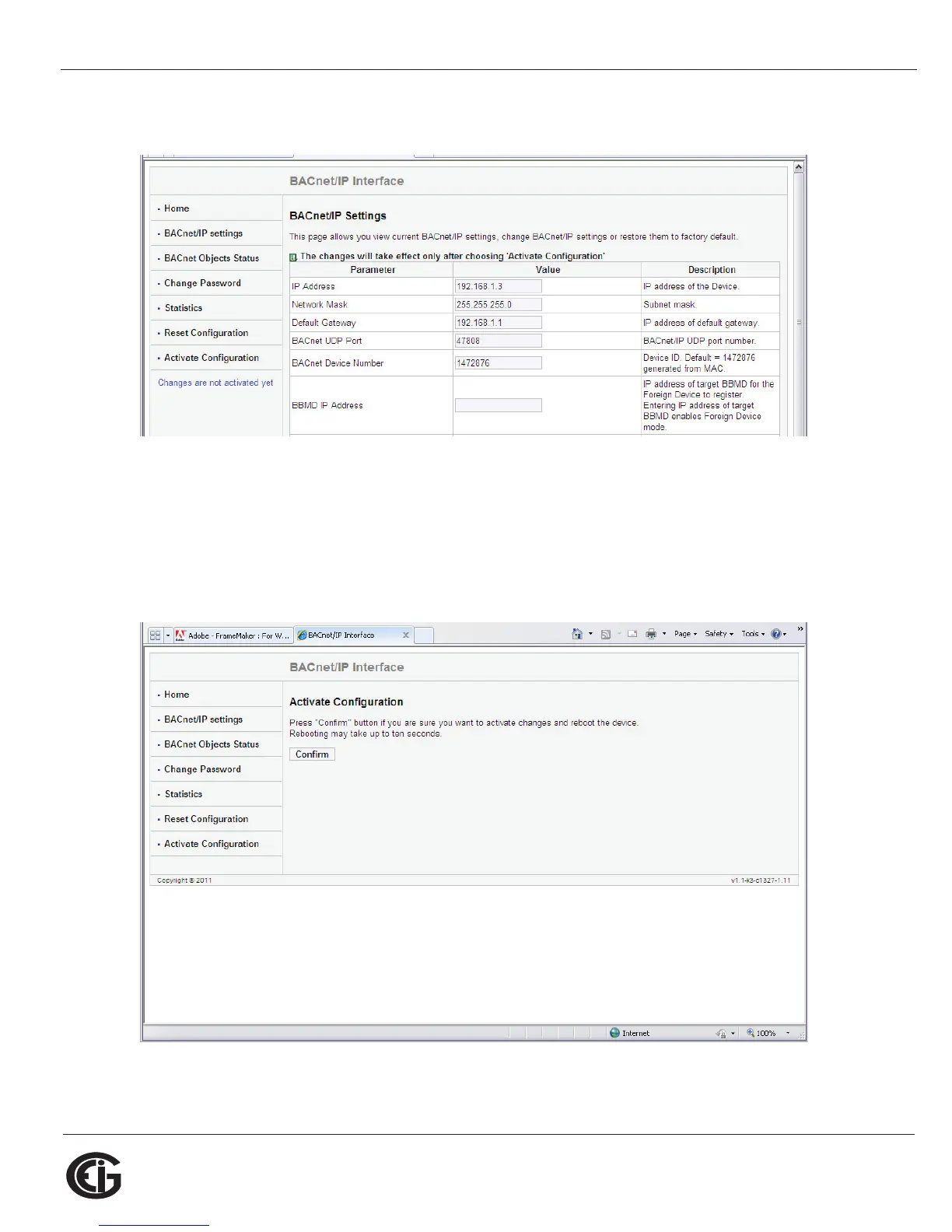 9. Click Activate Configuration from the left side of the webpage to implement any
