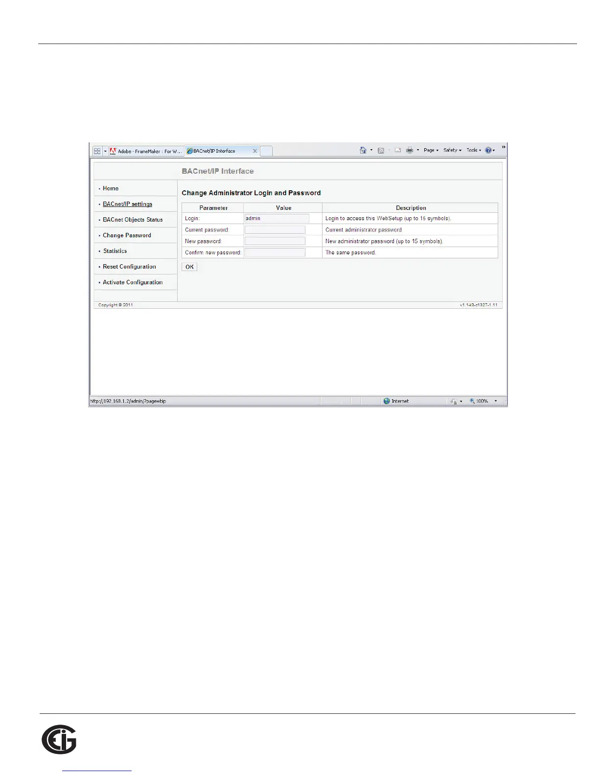 Use this page to change the Administrator Login and Password for this interface. We