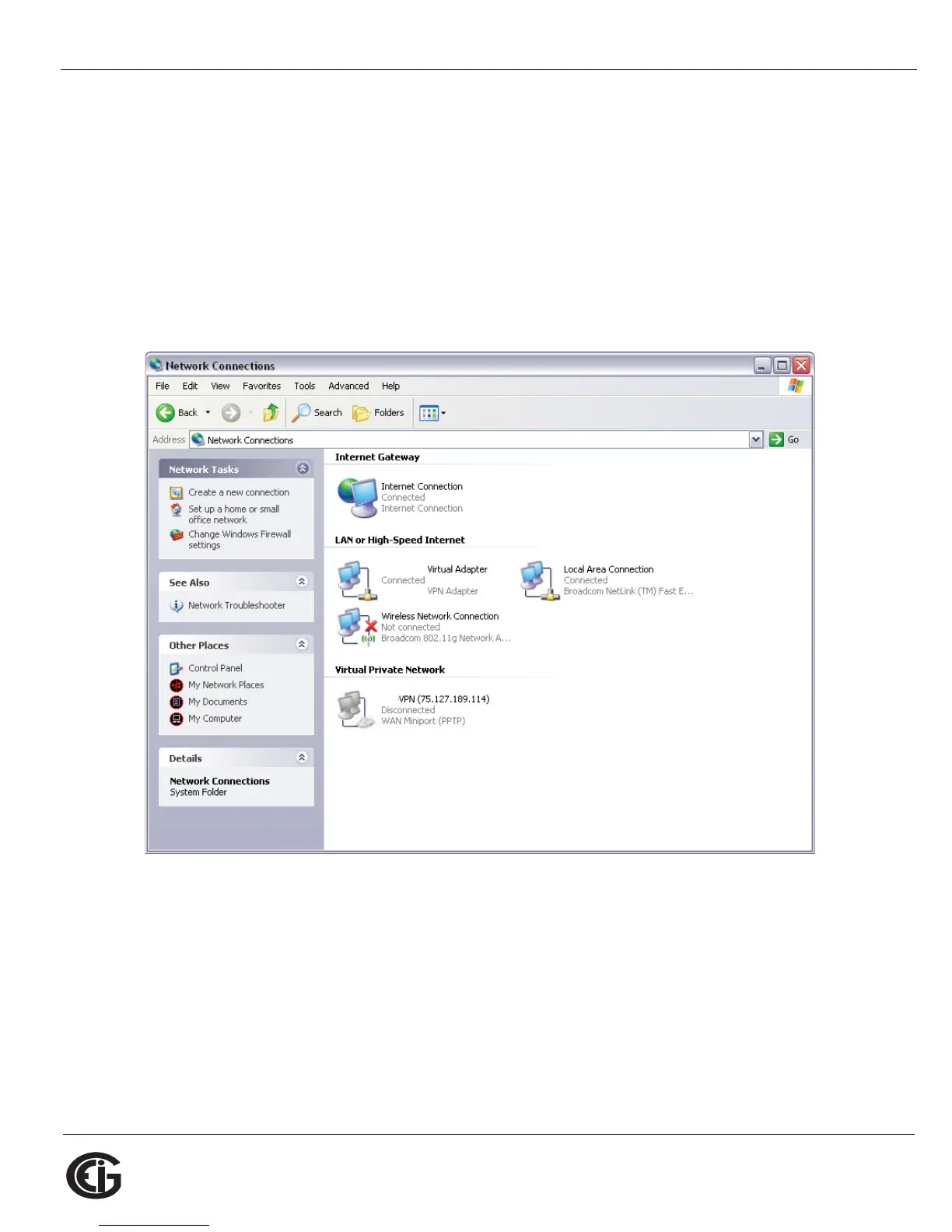 a. Click Start>Control Panel>Network Connections. You will see a screen